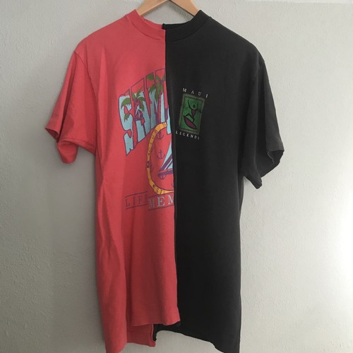 Vintage 90 S Custom Two T Shirts Stitched Together Black Red Single Stitch Ebay